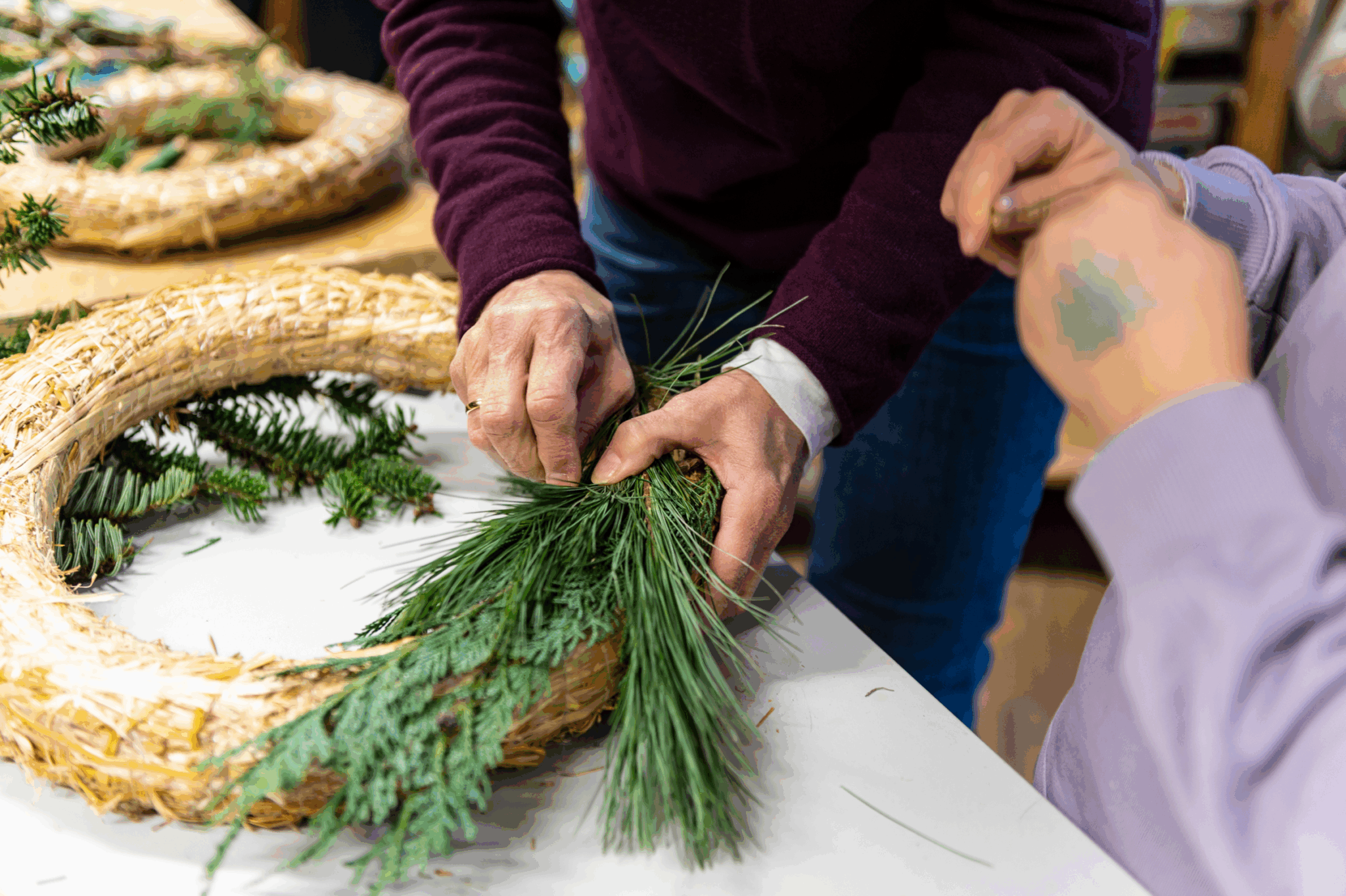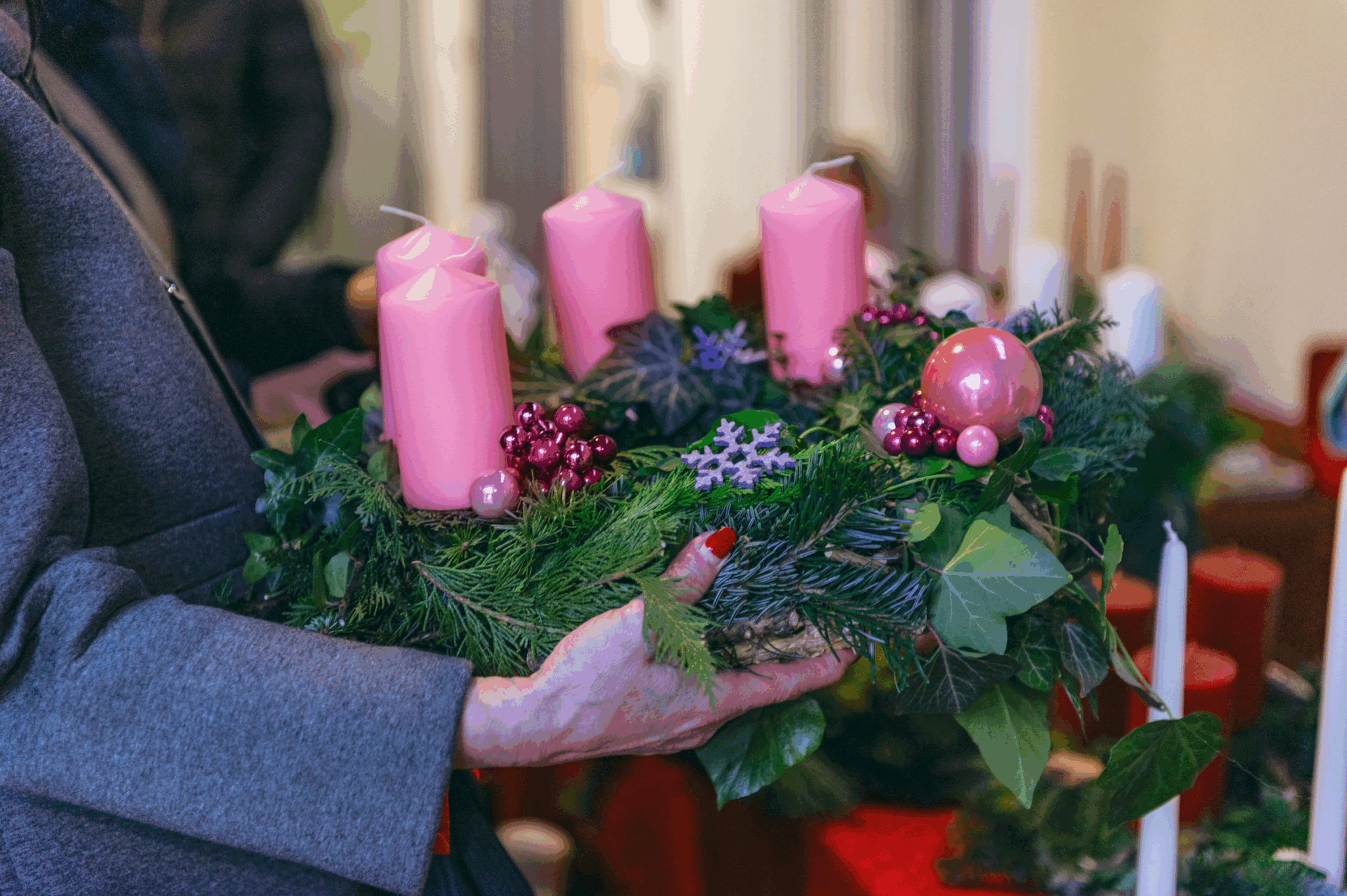Zum jährlich stattfindenden Weihnachtsbasar bieten wir unter anderem selbst gebundene Adventskränze und andere saisonale Arbeiten an.
